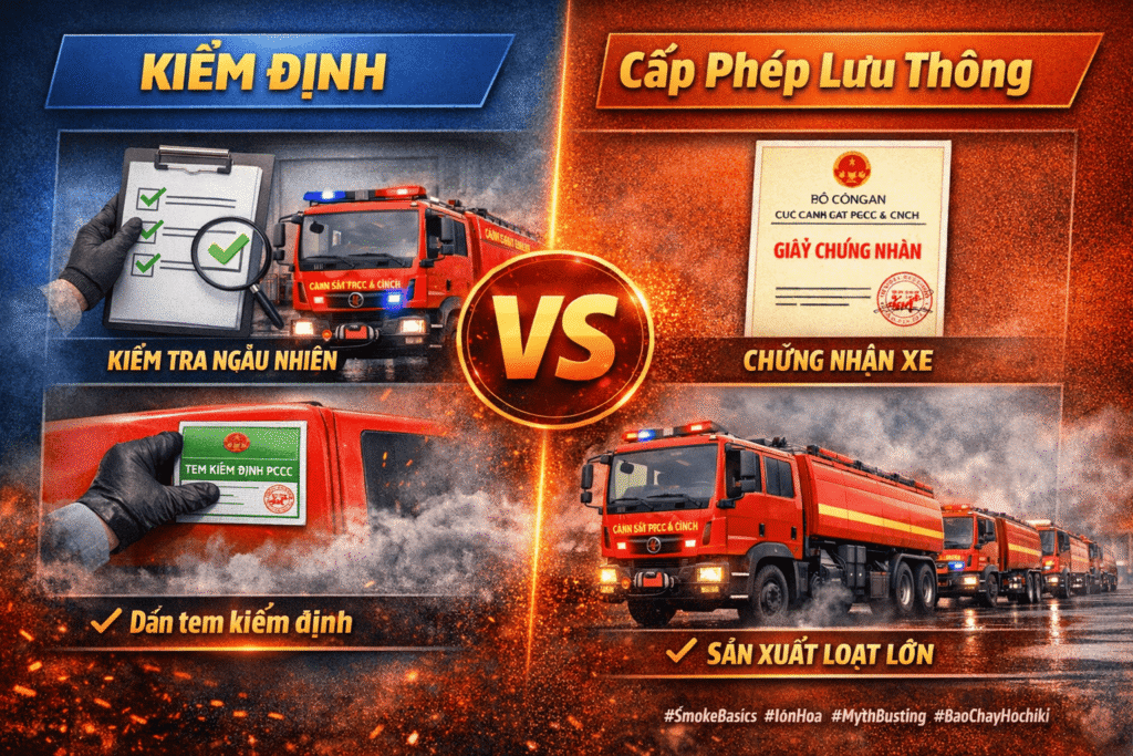 - Cấp phép lưu thông là hoạt động kiểm soát sau (post-control): Áp dụng cho mẫu phương tiện PCCC & CNCH sản xuất, lắp ráp hoặc nhập khẩu lần đầu tại Việt Nam. Khi mẫu được cấp phép, doanh nghiệp có thể sản xuất/nhập khẩu theo mẫu đó mà không cần cấp phép lại cho từng chiếc. Doanh nghiệp chịu trách nhiệm toàn bộ về chất lượng phương tiện.