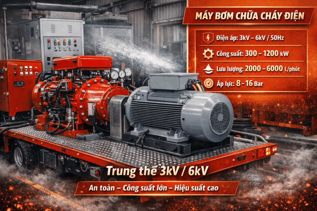 - Bơm chữa cháy điện trung thế (3kV, 6.6kV, 11kV): Phải thử nghiệm theo QCVN 03:2023/BCA hoặc tiêu chuẩn do nhà sản xuất/nhập khẩu công bố.