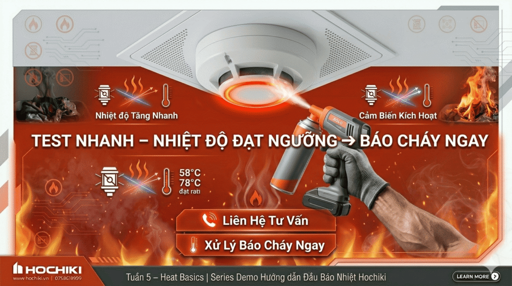 Đầu báo nhiệt cố định hay đầu báo đa tiêu chí (Multi-Criteria) – loại nào phù hợp hơn cho công trình của bạn? Trong Tuần 4 thuộc series Heat & Multi-Criteria, chúng tôi thực hiện demo test nhanh đầu báo nhiệt Hochiki và so sánh chi tiết giữa nhiệt cố định với đầu báo đa tiêu chí để giúp bạn lựa chọn đúng loại thiết bị.