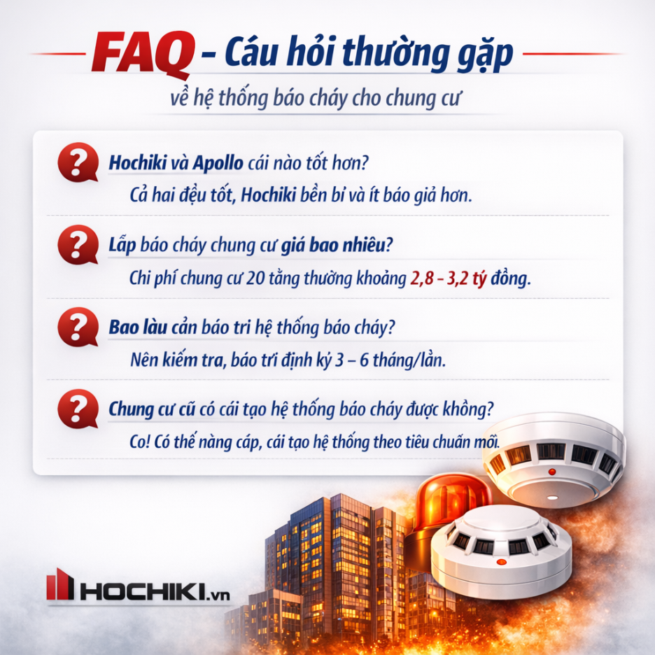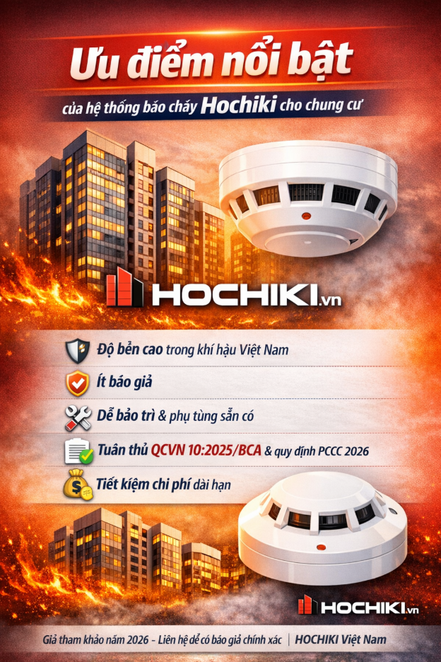 Khuyến nghị: Với đặc thù chung cư tại Việt Nam (mật độ dân cư cao, khí hậu nóng ẩm, yêu cầu vận hành lâu dài và chi phí hợp lý), Hochiki thường là lựa chọn cân bằng và tối ưu nhất cho hầu hết các dự án từ 10 – 50 tầng.