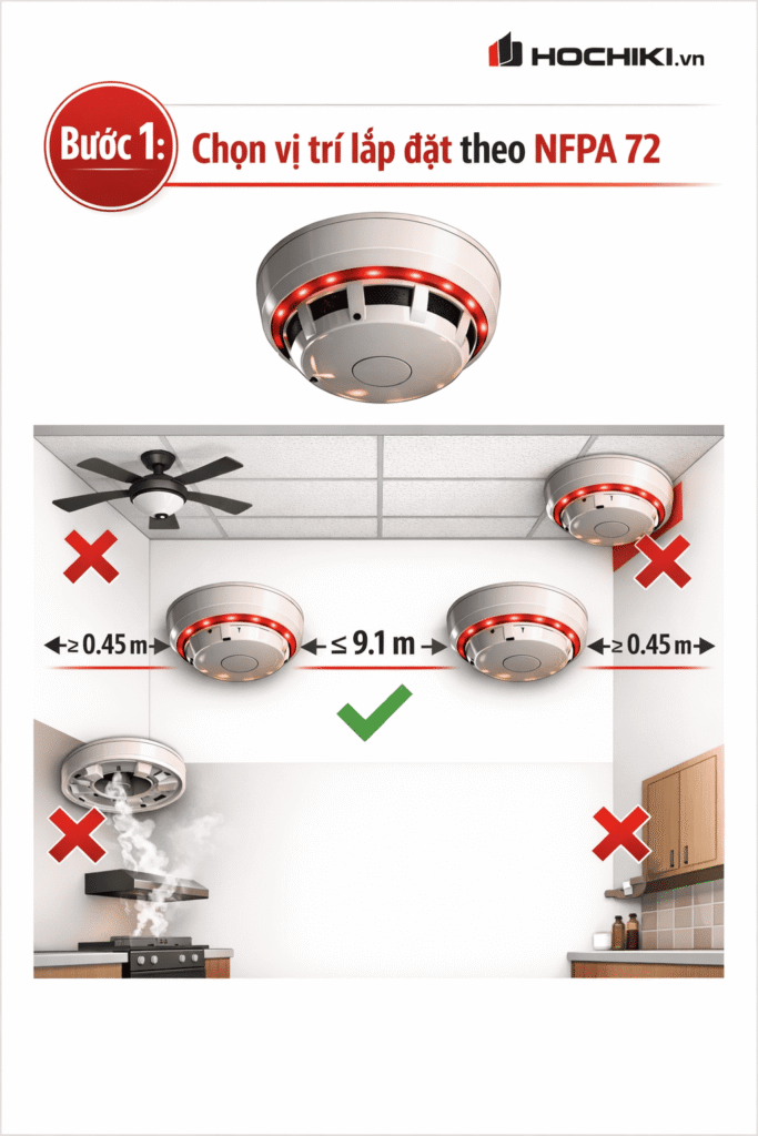 Bước 1: Chọn vị trí lắp đặt Theo NFPA 72: