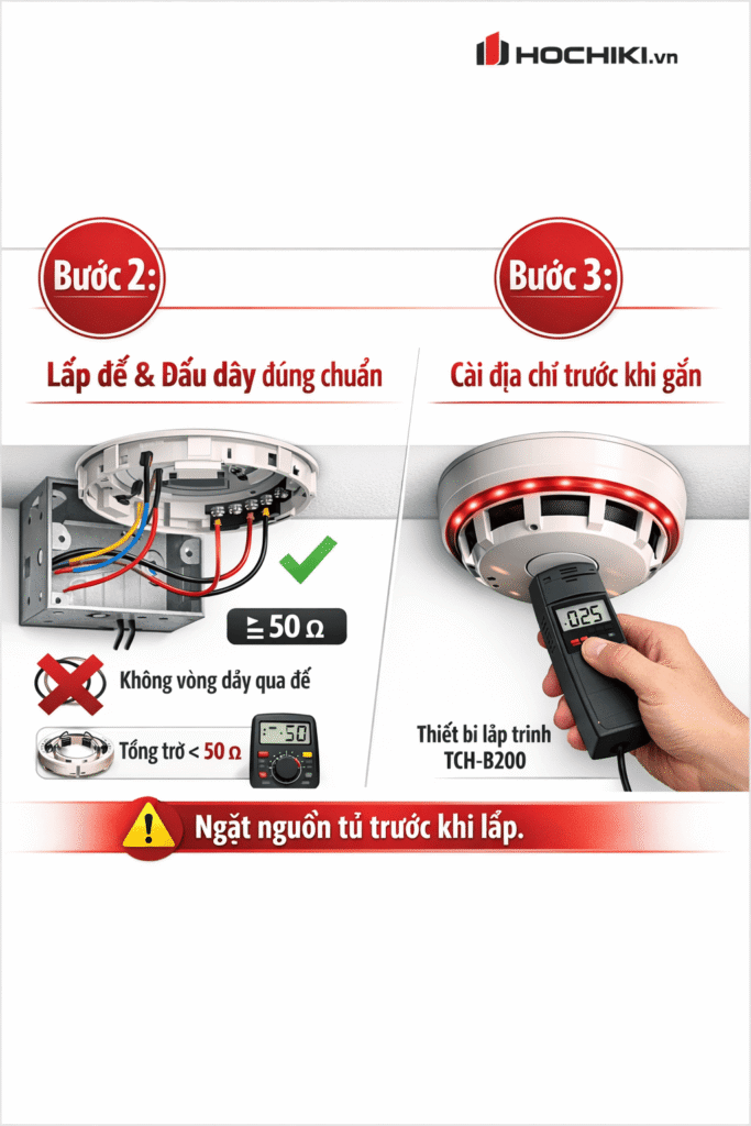 Tuần 3 | Hướng dẫn lắp đặt đầu báo khói Hochiki ALO-V đúng chuẩn NFPA 72