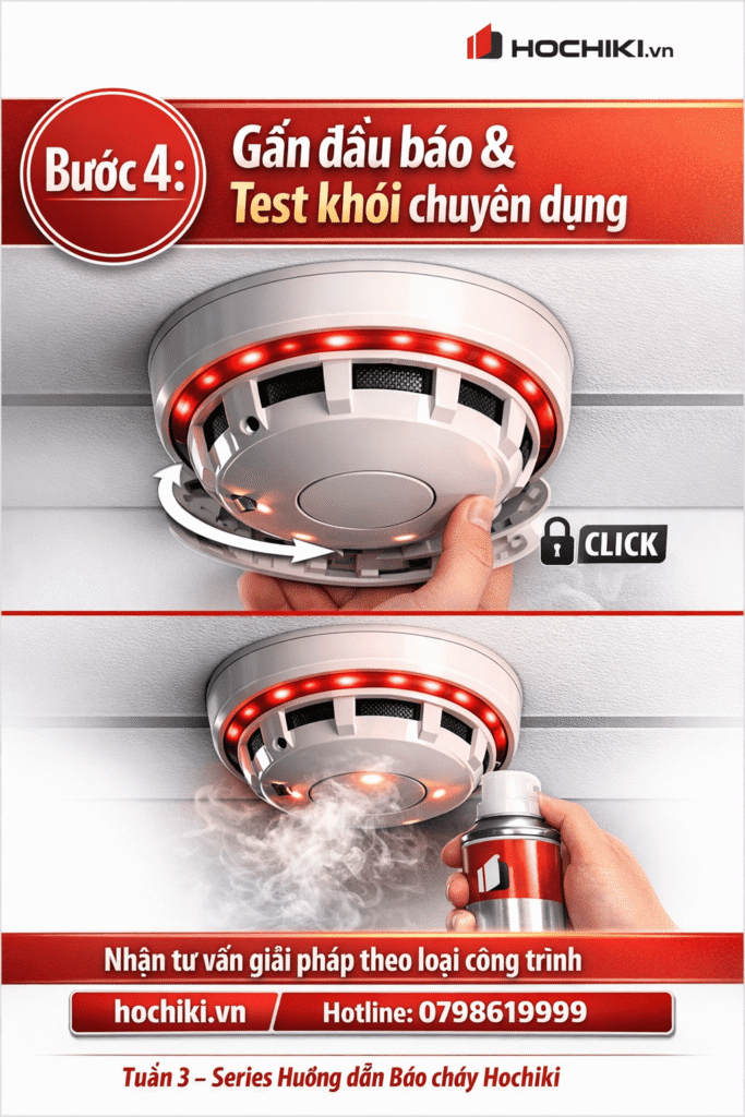Bước 4: Gắn đầu báo & Kiểm tra